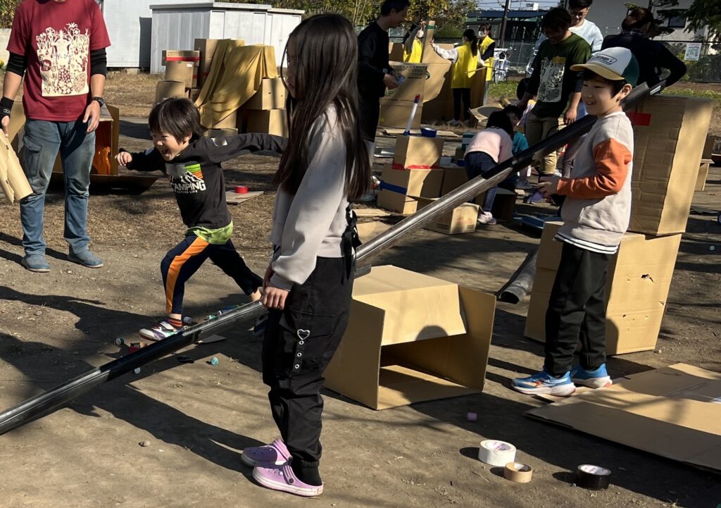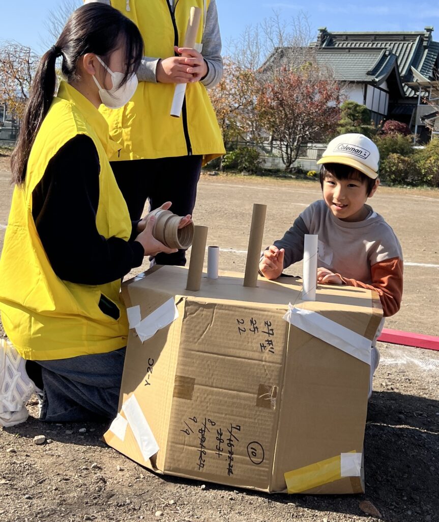 「みんなでダンボールを高く積み上げるぞー!」って協力したり、