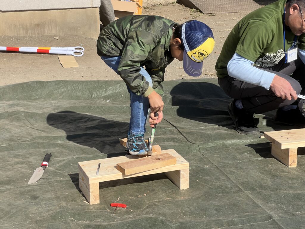 木工作コーナーでは、思い思いの作品を作ってましたよ。