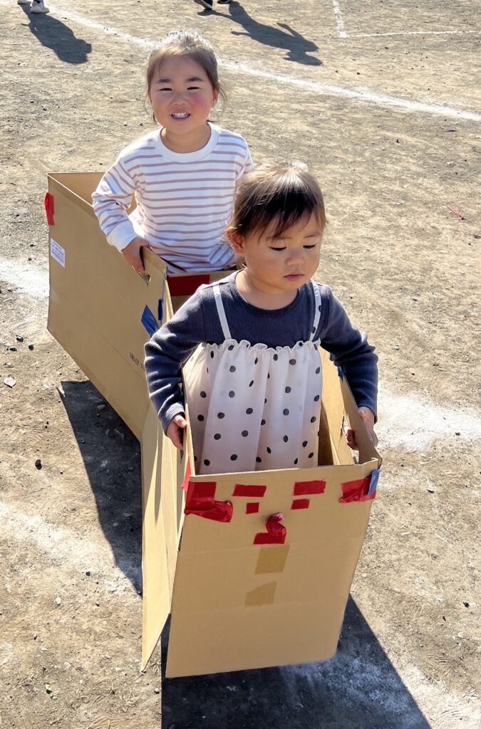 ダンボール電車に乗って公園内をぐるぐると回って楽しんでいる子もいましたよ♪